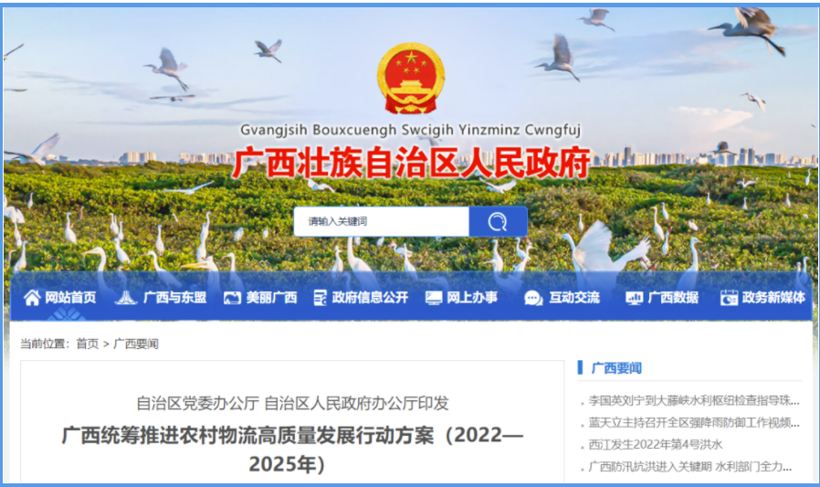 近日,自治区党委办公厅、自治区人民政府办公厅印发《广西统筹推进农村物流高质量发展行动方案(2022—2025年)》,要求各级部门结合实际认真贯彻落实,全文如下——