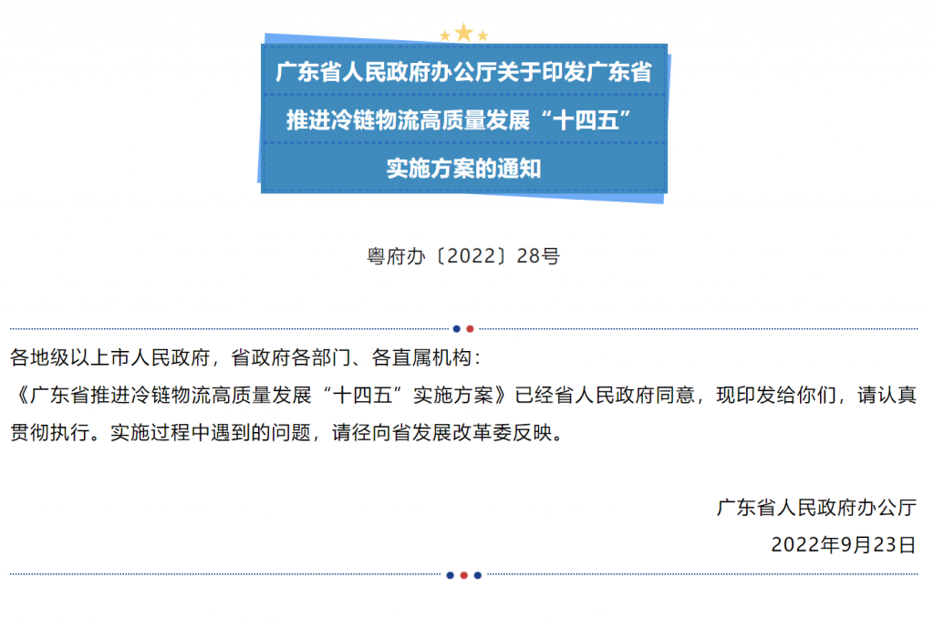 广东省推进冷链物流高质量发展“十四五”实施方案