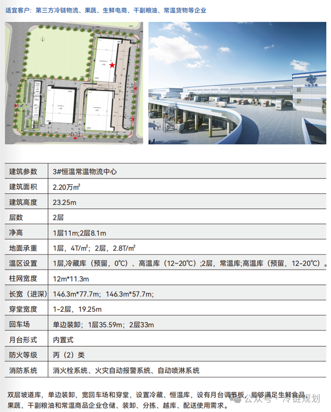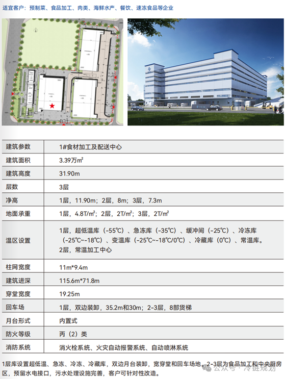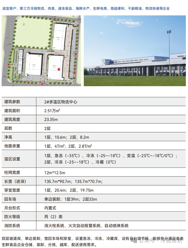本项目总占地规模:225亩,总建筑面积:17万平方米,项目总投资额13.52亿。仓储类型为丙二类高标库,其中:多温区冷库5.57万平方米(-55度至20度),常温库5.47万平方米,加工中心2.72万平方米。