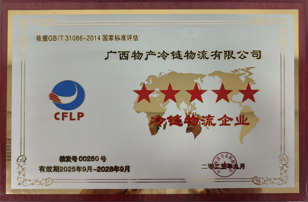 五星级冷链物流企业(仓储型)牌匾