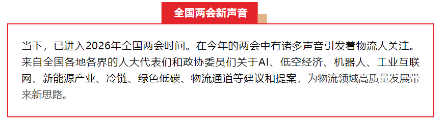 当下,全国两会时间已经开启,物流领域的新建议与新提案再度吸引了物流从业者的密切关注。展望2026年,物流业将迎来哪些新动向、新变革?今年两会中,物流领域的新声音值得期待。